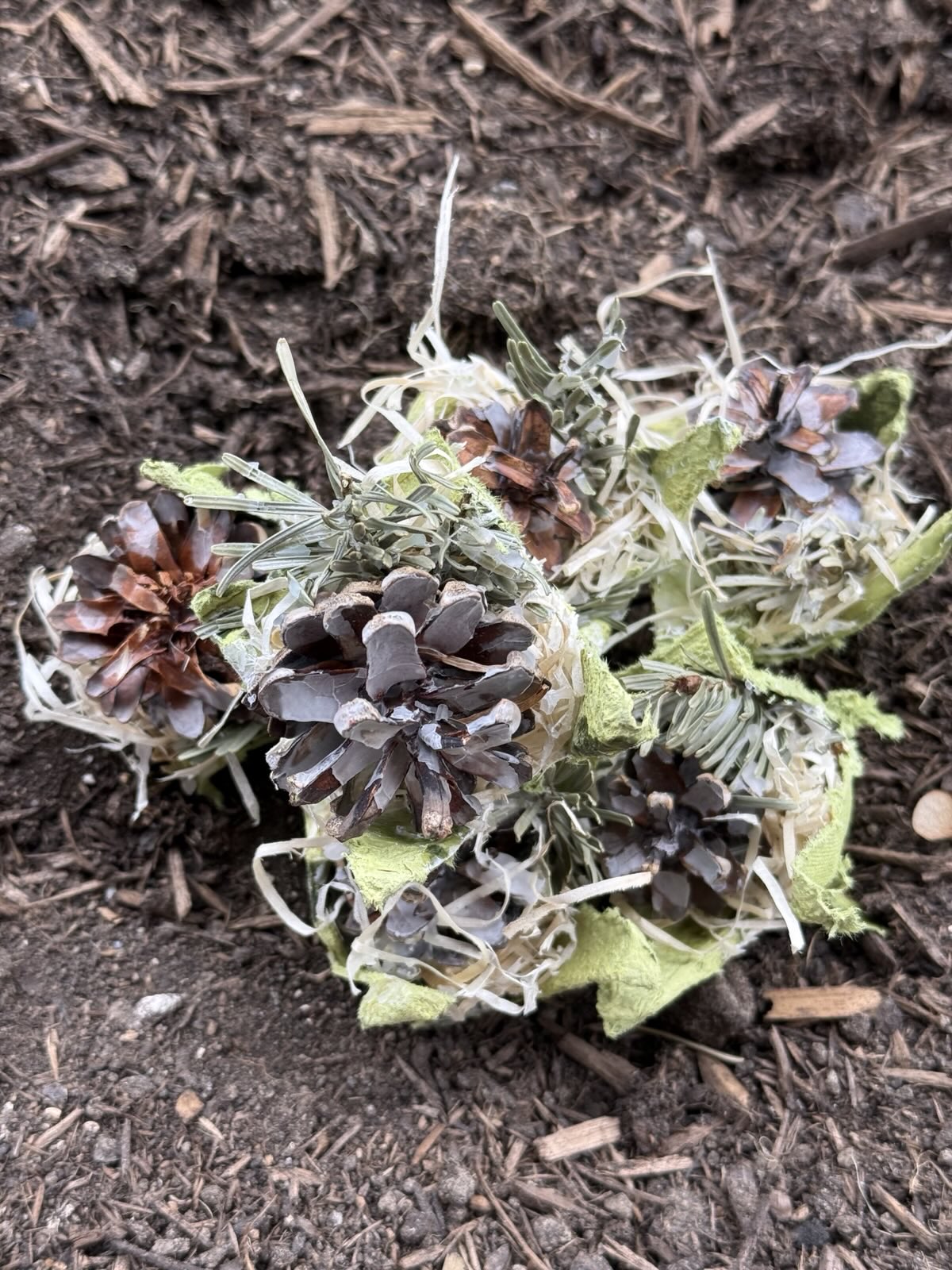 Handgefertigte Feueranzünder aus (semi-)natürlichen Materialien: Holzwolle (aus der Gebana-Lieferung), Kieferzapfen (im Engadin gesammelt, da wir hier beim Entlisberg fast nur lange Fichtenzapfen haben), Eierkarton und Kerzenwachs – brennt super!